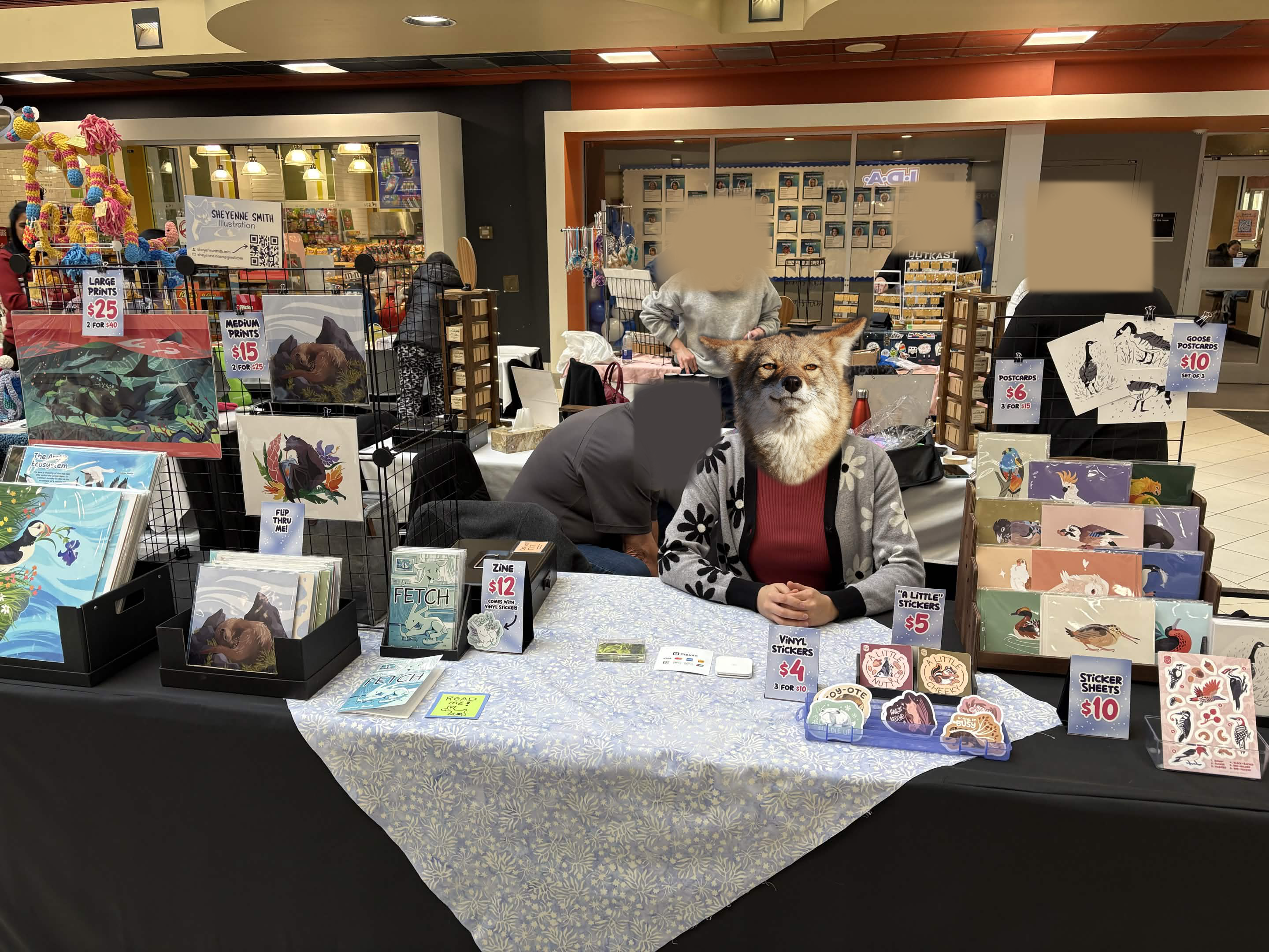 I've done 8 markets since then. Last year, I could barely think about working up the courage to do a single one. Through each market I slowly relaxed enough to sit in the main seat, talk to everybody who stops by, take all the payments from my phone, and generally leave my partner alone to work beside me on her own stuff or wander the venue. I hope some time this year I'll even be comfortable enough to do some markets totally solo!